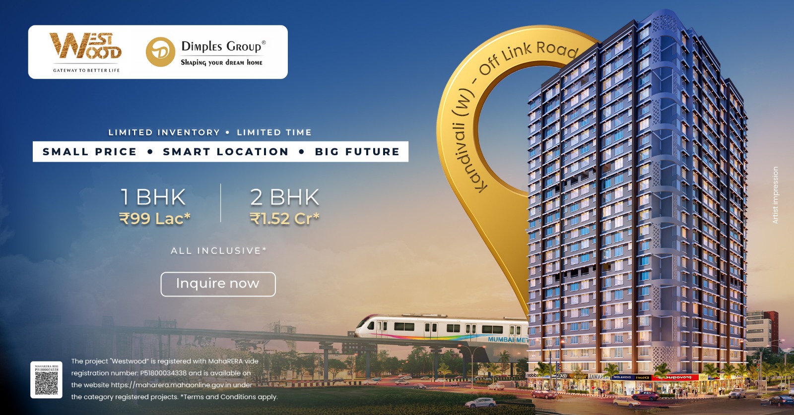Located so central in Kandivali, Westwood offers access to the best social infrastructure such as schools, colleges, malls, hospitals, metro, restaurants, and more. Get ready to explore the infinite possibilities every day.